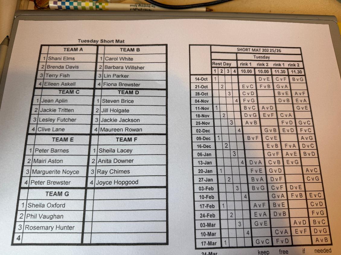22ND OCT E v A 14 - 12 D V B 7 - 17 F v G 15 - 15