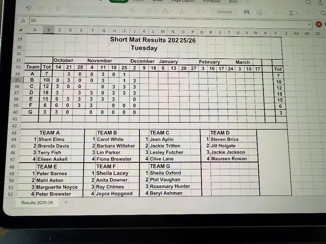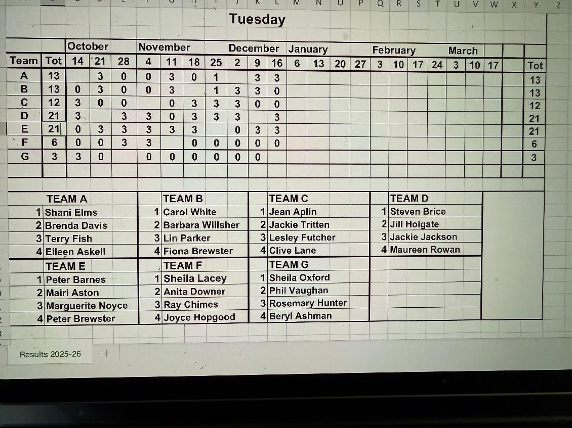 15TH OCT B v E 15 - 12 A v F 12 - 14 C v D 21 - 9